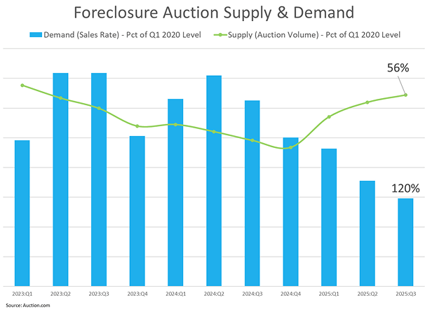 Foreclosure Auction Volume Increased 31 Percent in Q3 2025 as Buyer Demand Deteriorated to a Nearly Three-Year Low