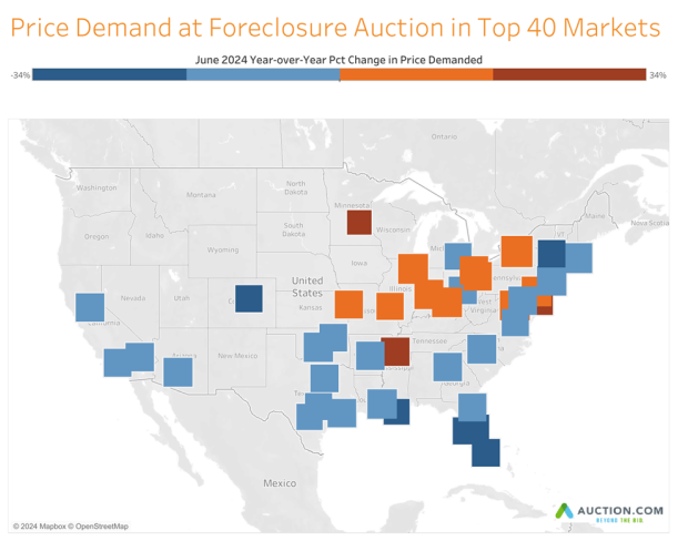 After a strong showing in the first quarter of 2024 — and well into the second quarter — demand for distressed properties sold at auction showed early signs of slipping in June even as the supply of properties available at auction continued to contract, according to proprietary data from Auction.com, the nation’s largest distressed property marketplace that accounts for nearly half of all properties sold at foreclosure auction nationwide.