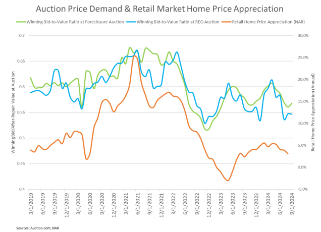 The weakening demand at distressed property auctions in Q3 2024 came even with continued constrained supply.
