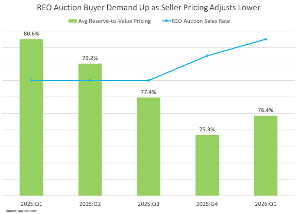 Demand signals were firmer than they were late in 2025, but the improvement was selective. REO auction demand strengthened more clearly than foreclosure auction demand, and buyer price tolerance stabilized unevenly across local markets. At the same time, seller pricing adjusted gradually in response to those local conditions, helping narrow bid-ask spreads on a quarter-over-quarter basis.