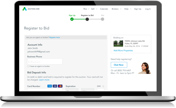 Please visit the applicable County or Foreclosure Sale Agent website or contact the County or Foreclosure Sale Agent directly to obtain information regarding foreclosure sales. For sales conducted by Auction.com, you can visit our Auction Calendar and access the information posted on the Property detail pages for further details.
