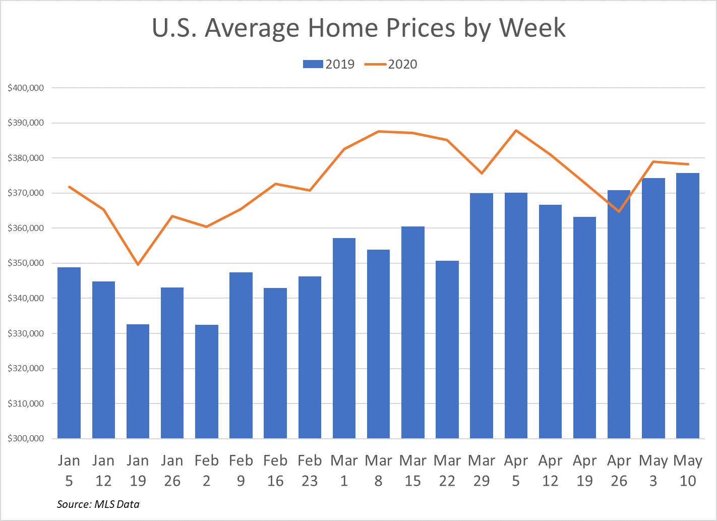While retail home sales continue to lag 30 to 50 percent below year-ago levels, average home sale prices for the most part have continued to increase on an annualized basis, according to an Auction.com analysis of weekly MLS data. The analysis shows that home prices have increased an average of 3 percent compared to a year ago in the nine weeks since the pandemic and national emergency declarations. Prices did go negative in one week, the week starting April 26, but bounced back to positive appreciation in the following two weeks.