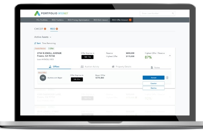 Auction.com’s latest solution is called Offer Interact™, part of the Auction Interact® family of tools and services for maximizing the successful transactions of bank-owned and foreclosure homes.