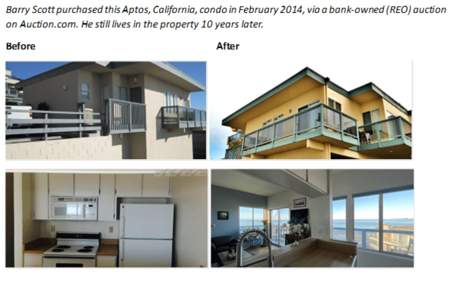 “The living here is just so nice,” said Scott, sitting in his Aptos, California, oceanfront condo almost 10 years to the day after buying the home on Valentine’s Day of 2014. A panoramic view of the Pacific Ocean shimmered behind Scott as he spoke. “If it wasn’t for Auction.com I wouldn’t be here. There’s just no way on earth.”